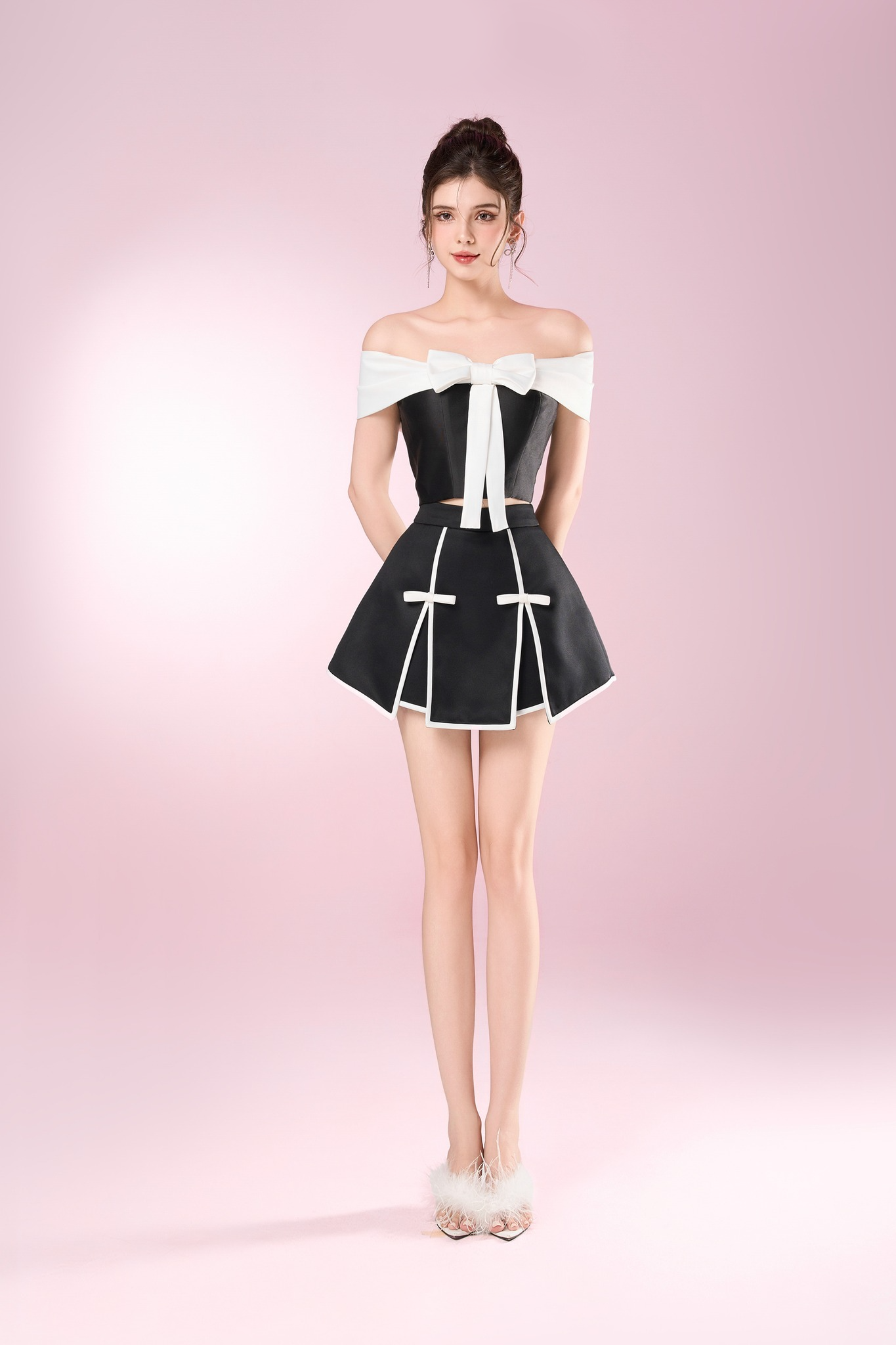 Black & White Off-Shoulder Set “Tuxedo Belle” TB421