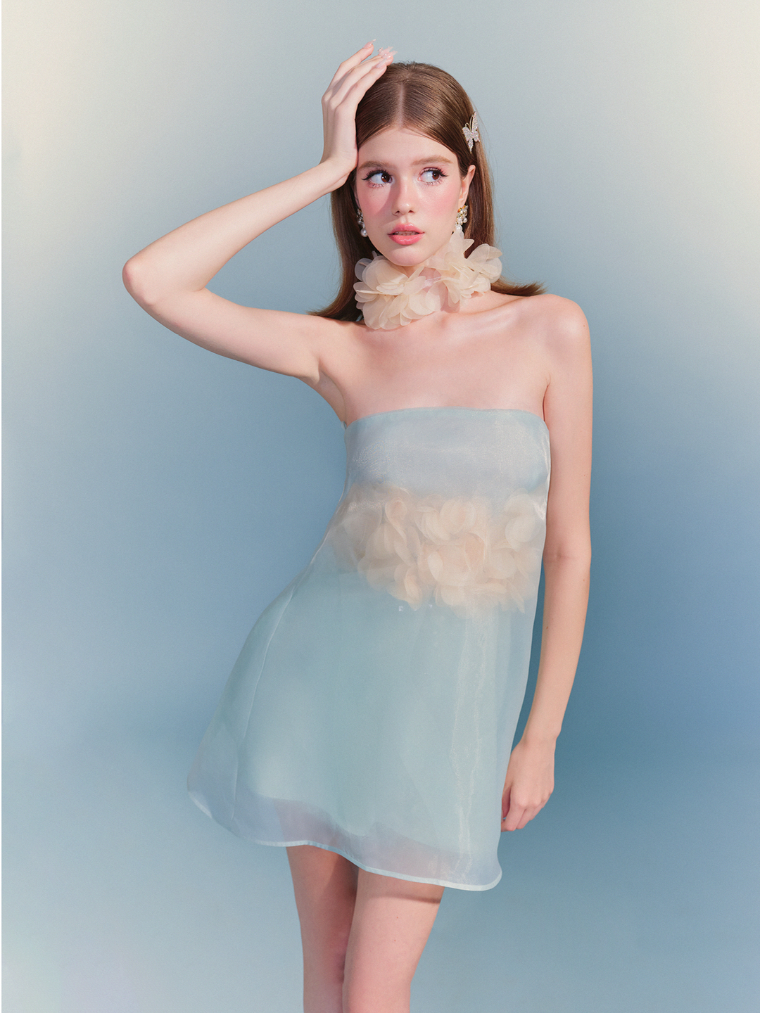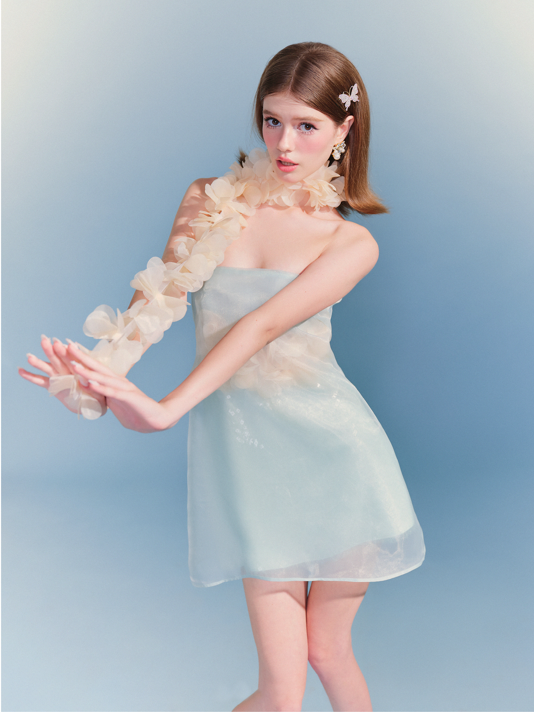 Blue Organza Ruffle Mini Dress “Celestial Whisper” CW427
