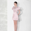 Blush Pink Puff-Sleeve Mini Dress “Delicate Bloom” DB402
