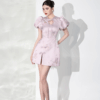Blush Pink Puff-Sleeve Mini Dress “Delicate Bloom” DB402