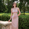 Blush Pink Strapless Draped Evening Gown “Silk Whisper” DR652