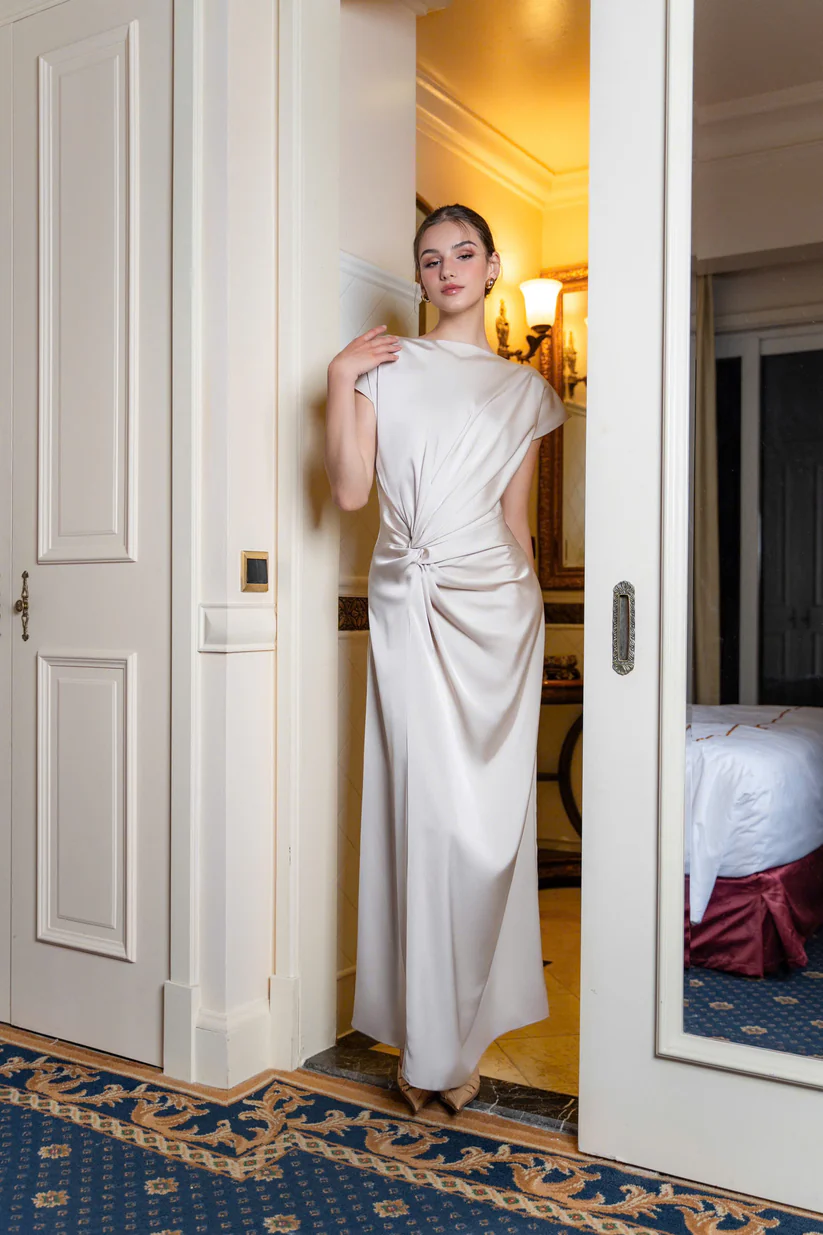 Champagne Satin Gown “Moonlight Fold” DR899