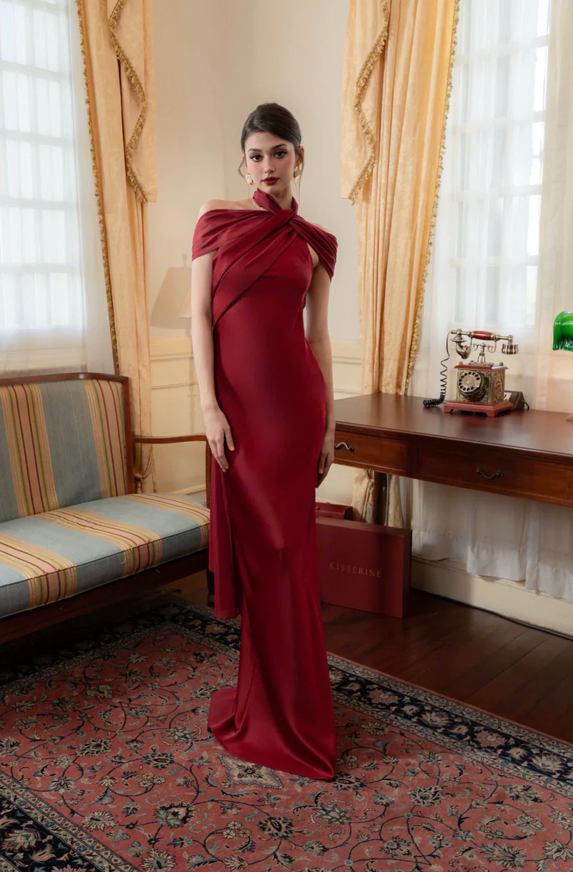 Deep Red Draped Gown “Scarlet Whisper” DR933