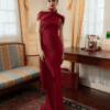 Deep Red Draped Gown “Scarlet Whisper” DR933