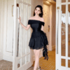 Elegant Off-Shoulder Ruffle Mini Dress “Midnight Elegance” ME101
