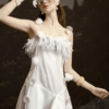 Ethereal White Feathered Midi Dress “Moonlit Reverie” DR823