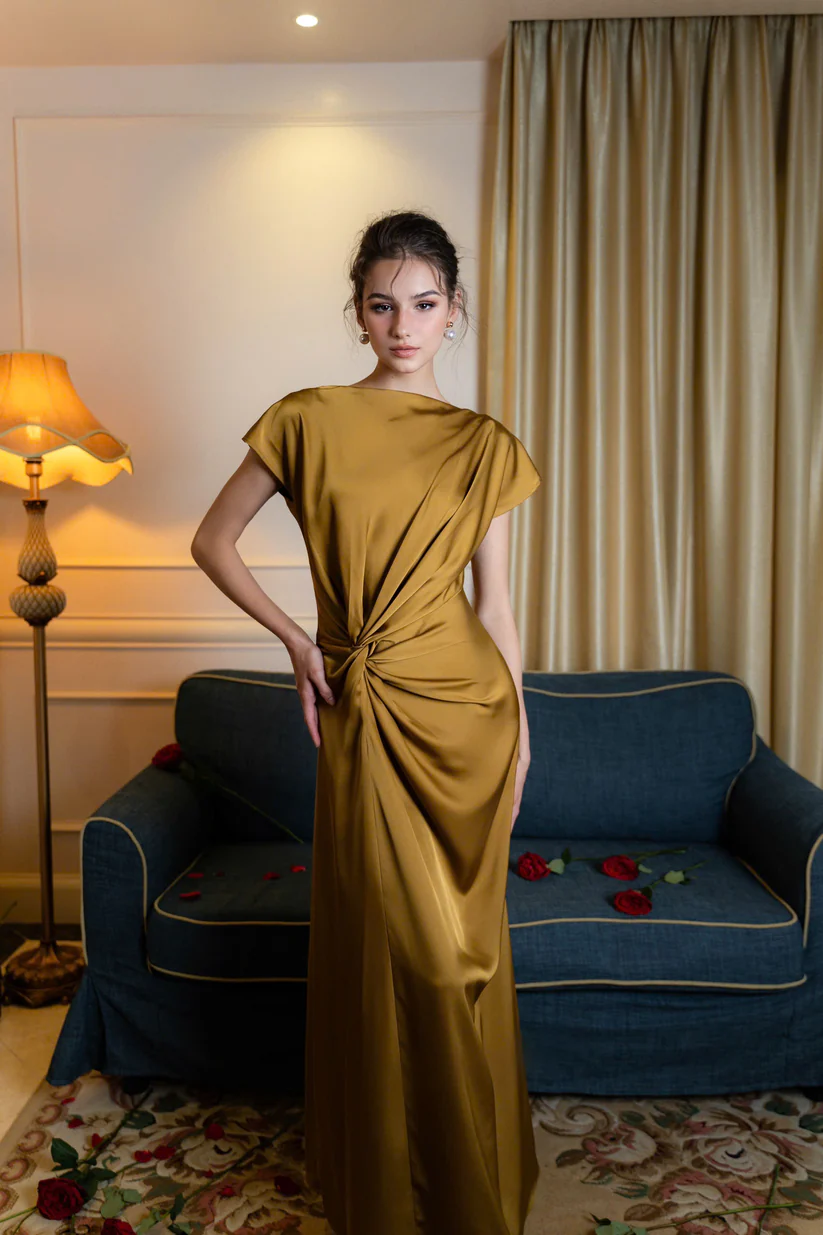 Golden Satin Gown “Marigold Dusk” DR116