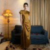Golden Satin Gown “Marigold Dusk” DR116