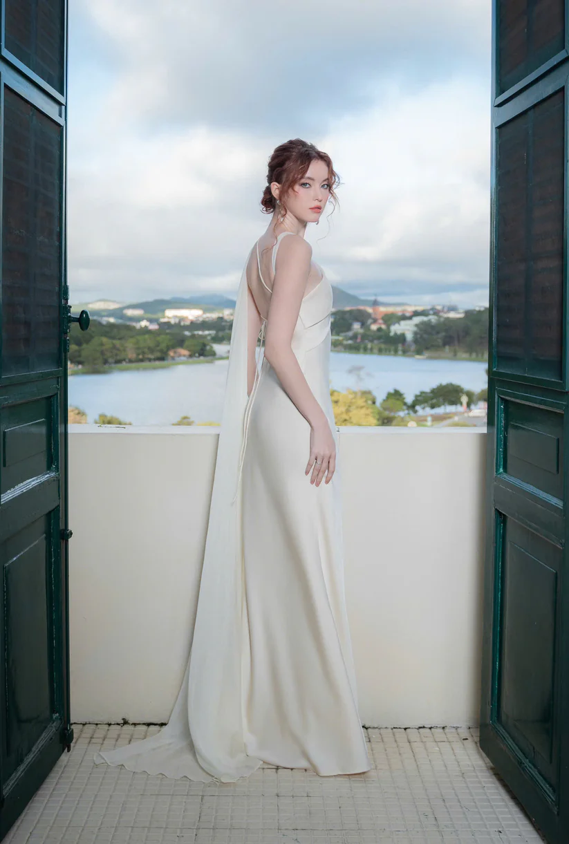 Ivory One-Shoulder Evening Gown “Luna Grace” DR834