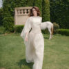 Ivory Organza Draped Evening Gown “Whisper Breeze” DR342