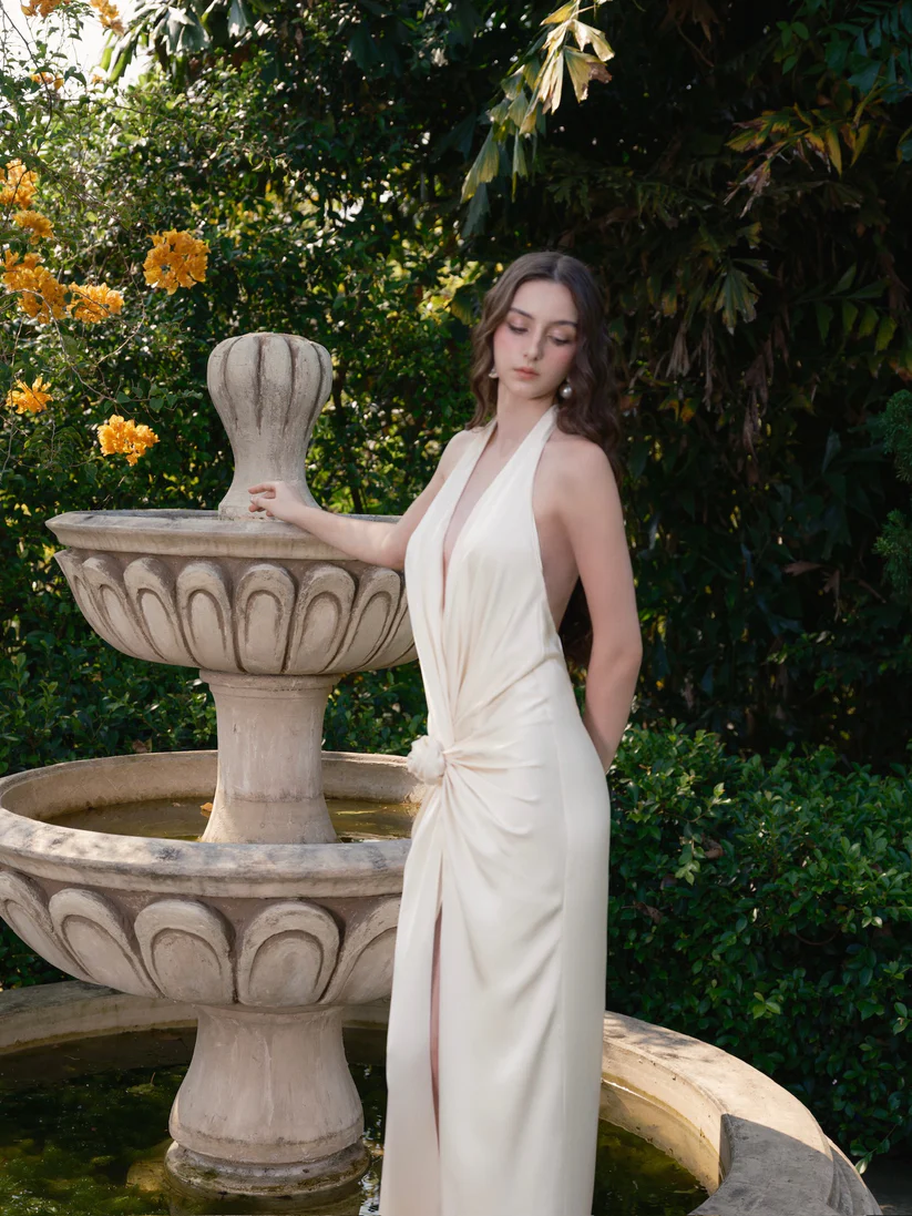 Ivory Satin Halter Gown “Moonlight Whisper” DR569