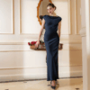 Navy Satin Cowl Neck Gown “Midnight Whisper” DR335