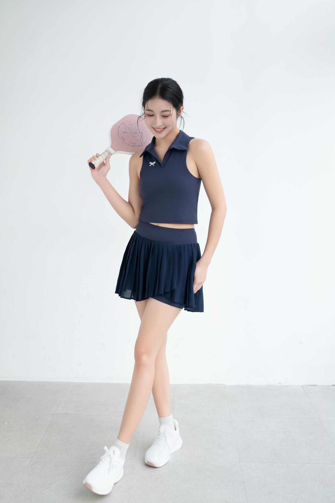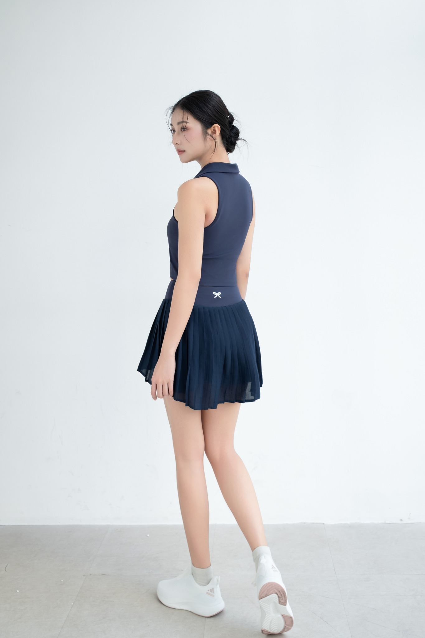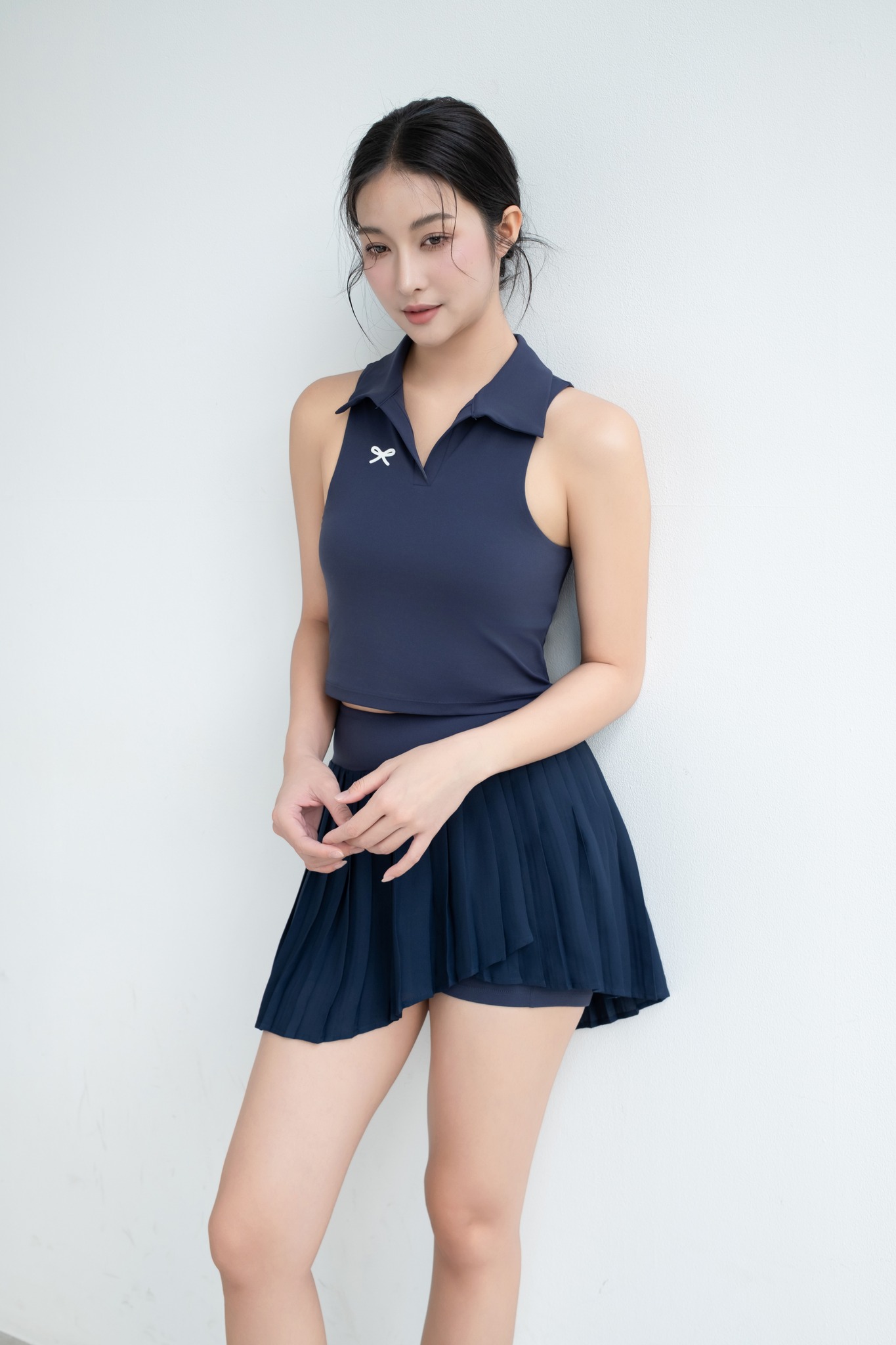 Navy Sleeveless Polo Crop Top & Pleated Mini Skort Set “Ace Serve” AS402