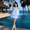Sky Blue Floral Halter Bubble Dress “Ocean Breeze” DR813