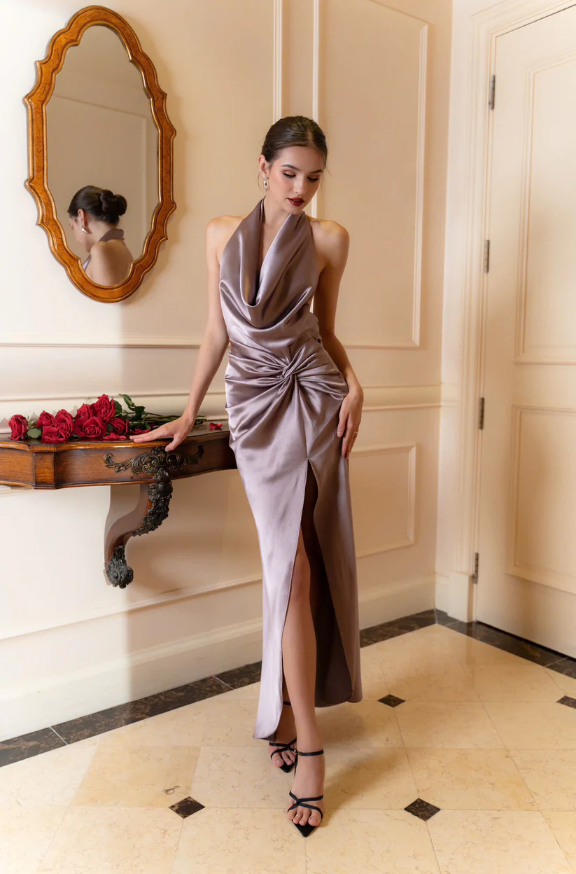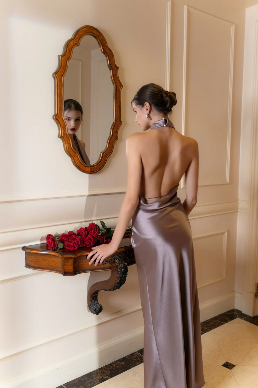 Sleek Satin Halter Dress “Midnight Whisper” DR593