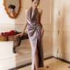Sleek Satin Halter Dress “Midnight Whisper” DR593