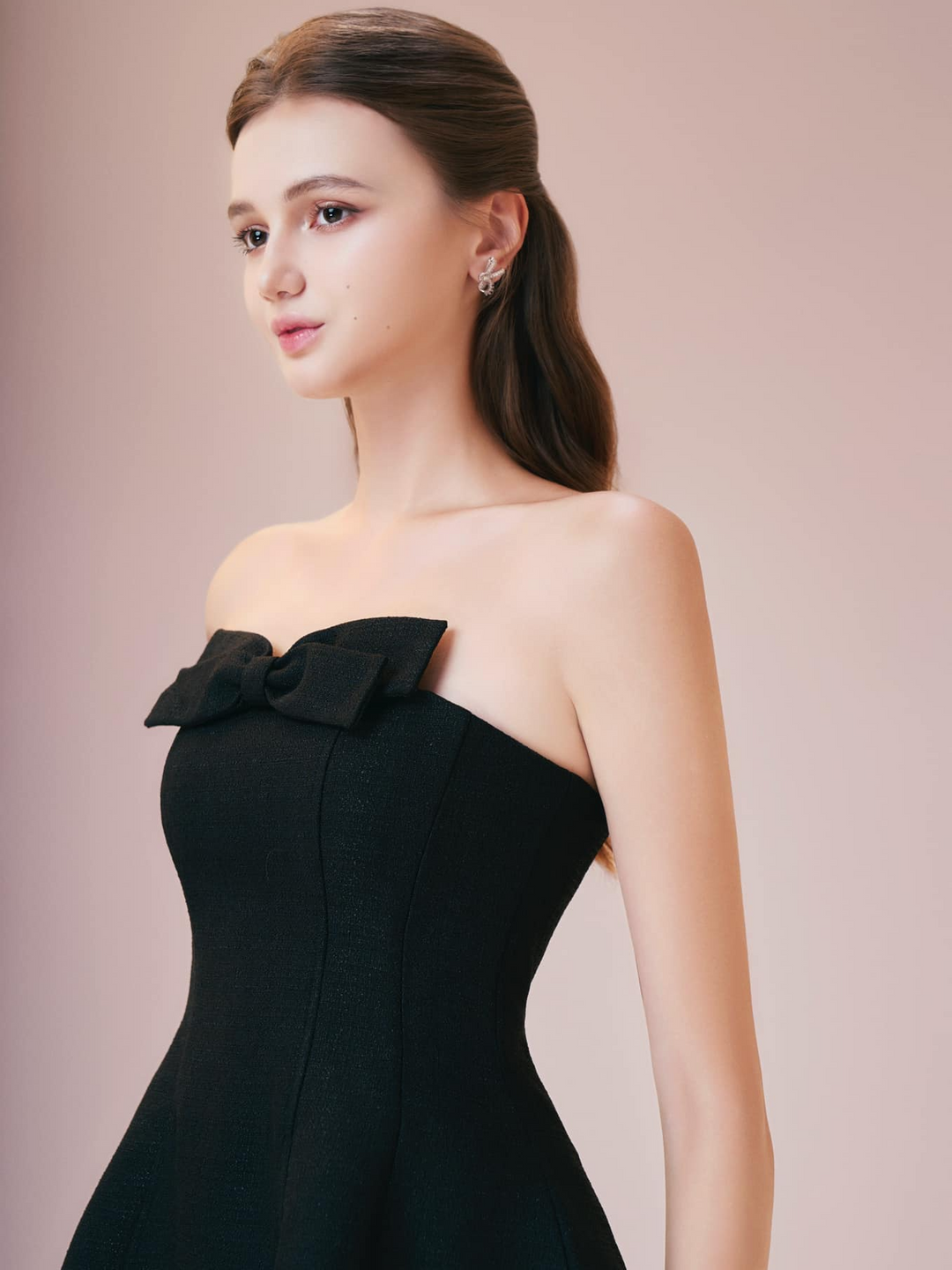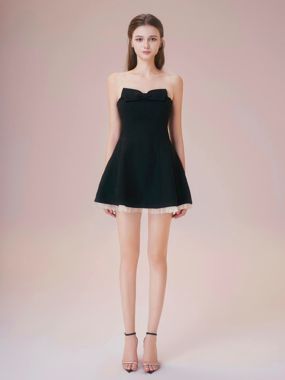 Strapless Bow Mini Dress “Noir Éclat” CO260
