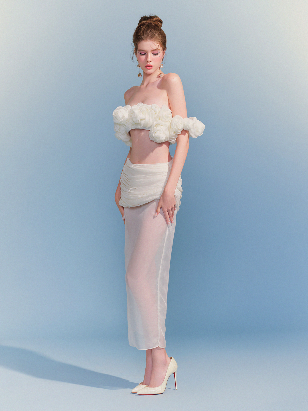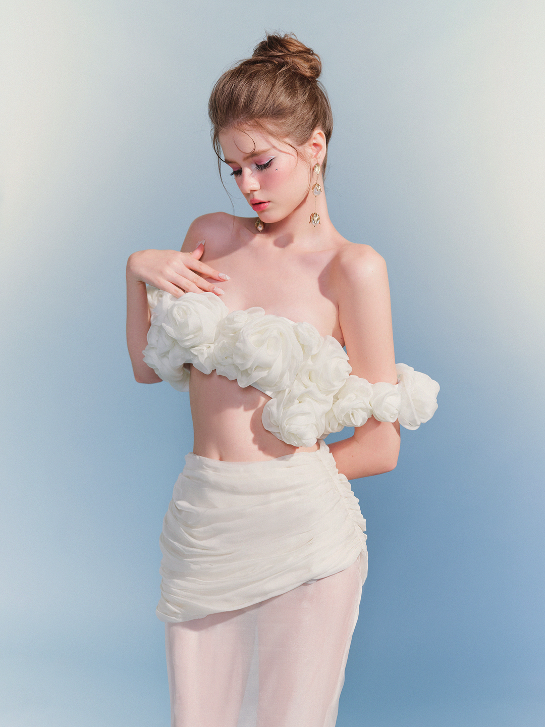 White Floral Rosette Two-Piece Set “Ethereal Bloom” ER301