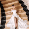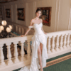 White Satin Off-Shoulder High-Slit Gown “Moonlit Elegance” DR661