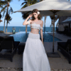 White Tiered Maxi Skirt and Off-Shoulder Crop Top Set “Ocean Breeze” DR928