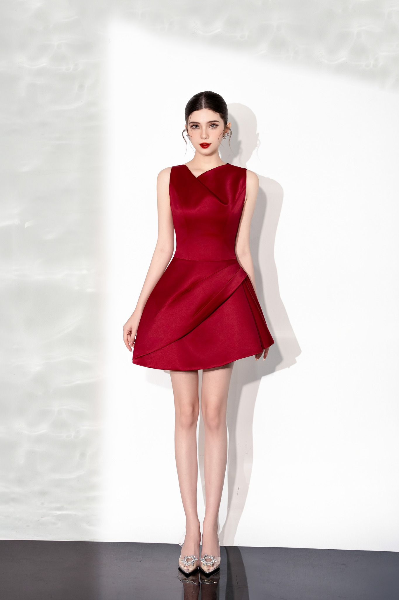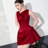 Wine Red Draped Mini Dress “Scarlet Grace” SG305